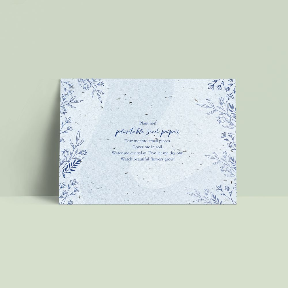 Beautifully designed save  the dates, personalised for you and printed on our signature UK-made 280gsm plantable seed paper. A simple, planet-friendly way to invite your guests.