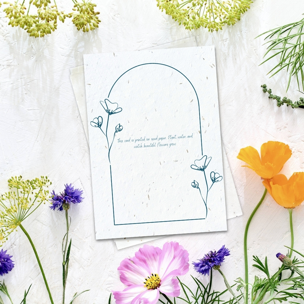 Our seed paper is handmade in the UK using recycled materials and embedded with native British wildflower seeds. Once planted, the paper composts away, leaving only flowers behind.
