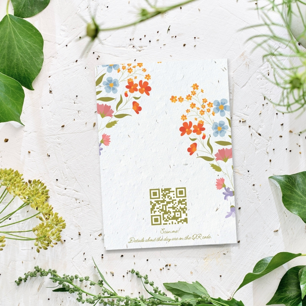 Beautifully designed wedding invites, personalised for you and printed on our signature UK-made 280gsm plantable seed paper. A simple, planet-friendly way to invite your guests.